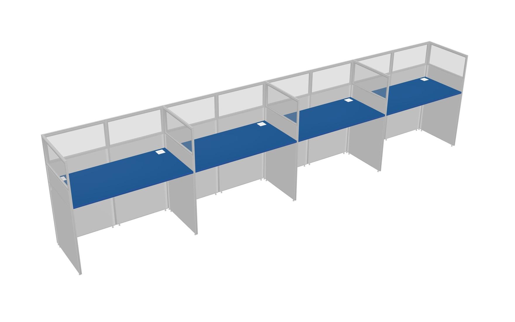Prism Blue Shared Rectangular Office Cubicle Panel System For 4 Persons