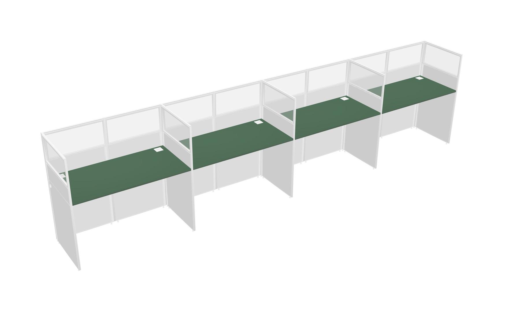 Green Shared Rectangular Office Cubicle Panel System For 4 Persons