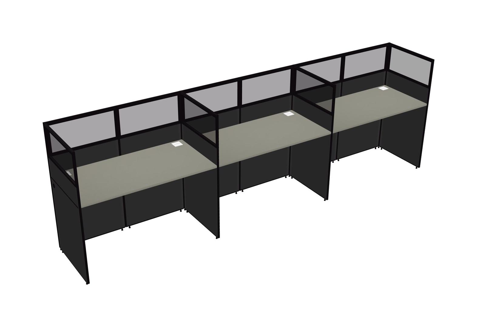 Grey Shadows Shared Rectangular Office Cubicle Panel System For 3 Persons