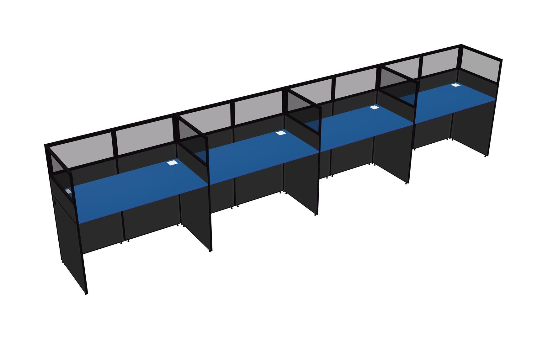 Prism Blue Shared Rectangular Office Cubicle Panel System For 4 Persons