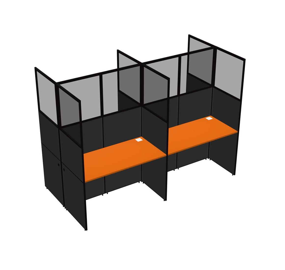 Orange Shared Rectangular Office Cubicle Panel System For 4 Persons