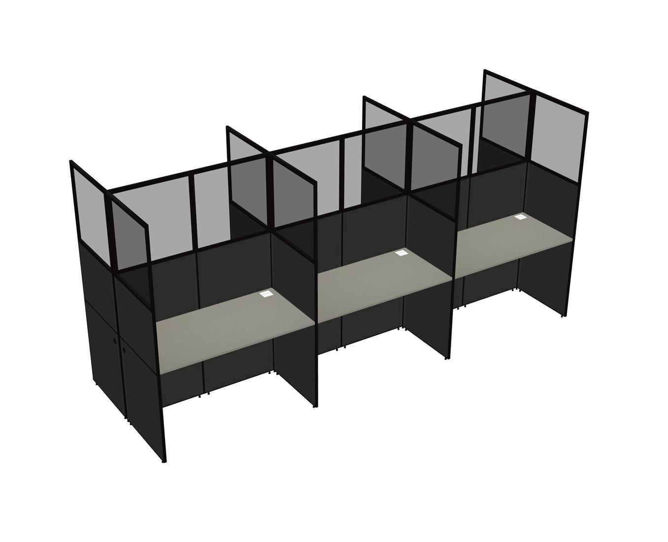 Grey Shadows Shared Rectangular Office Cubicle Panel System For 6 Persons