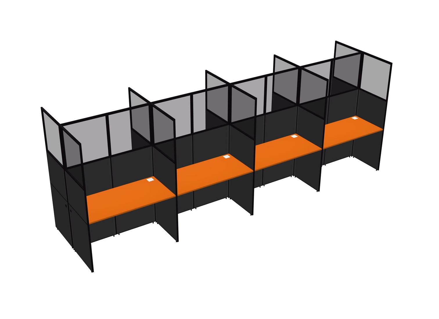 Orange Shared Rectangular Office Cubicle Panel System For 8 Persons