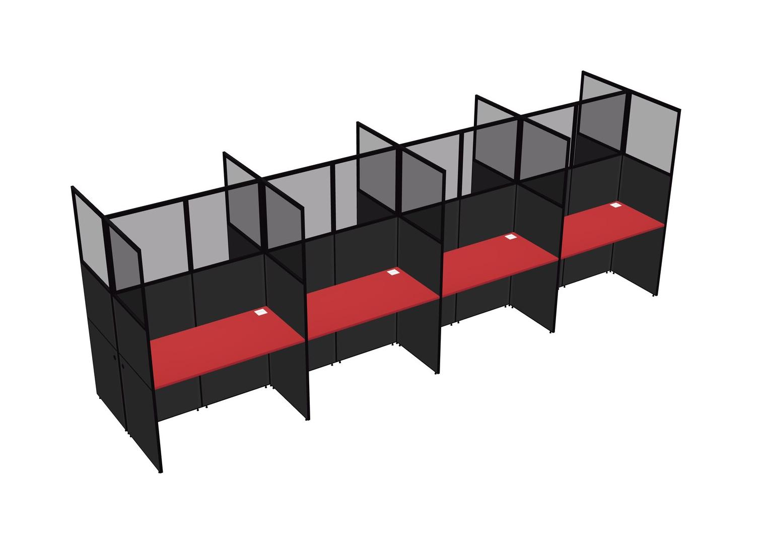 Prism Red Shared Rectangular Office Cubicle Panel System For 8 Persons