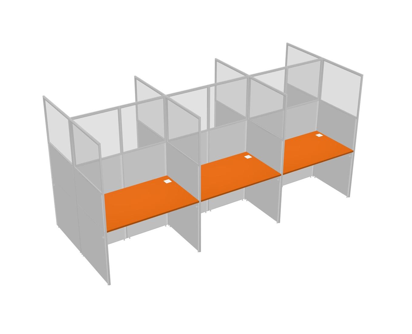 Orange Shared Rectangular Office Cubicle Panel System For 6 Persons