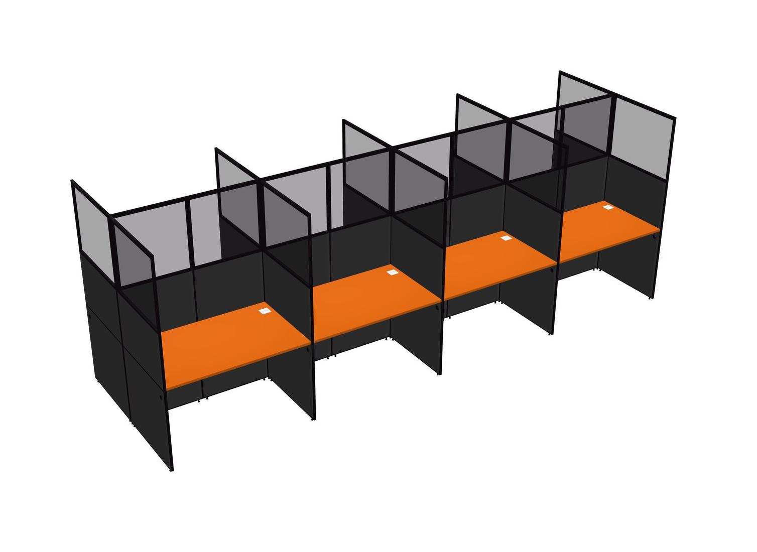 Orange Shared Rectangular Office Cubicle Panel System For 8 Persons