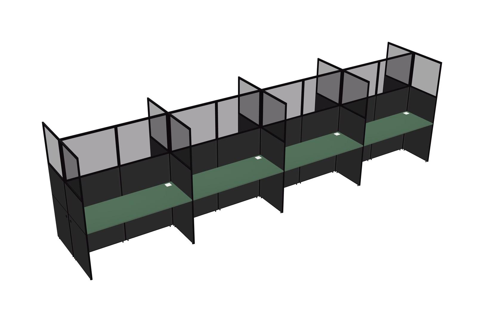 Green Shared Rectangular Office Cubicle Panel System For 8 Persons