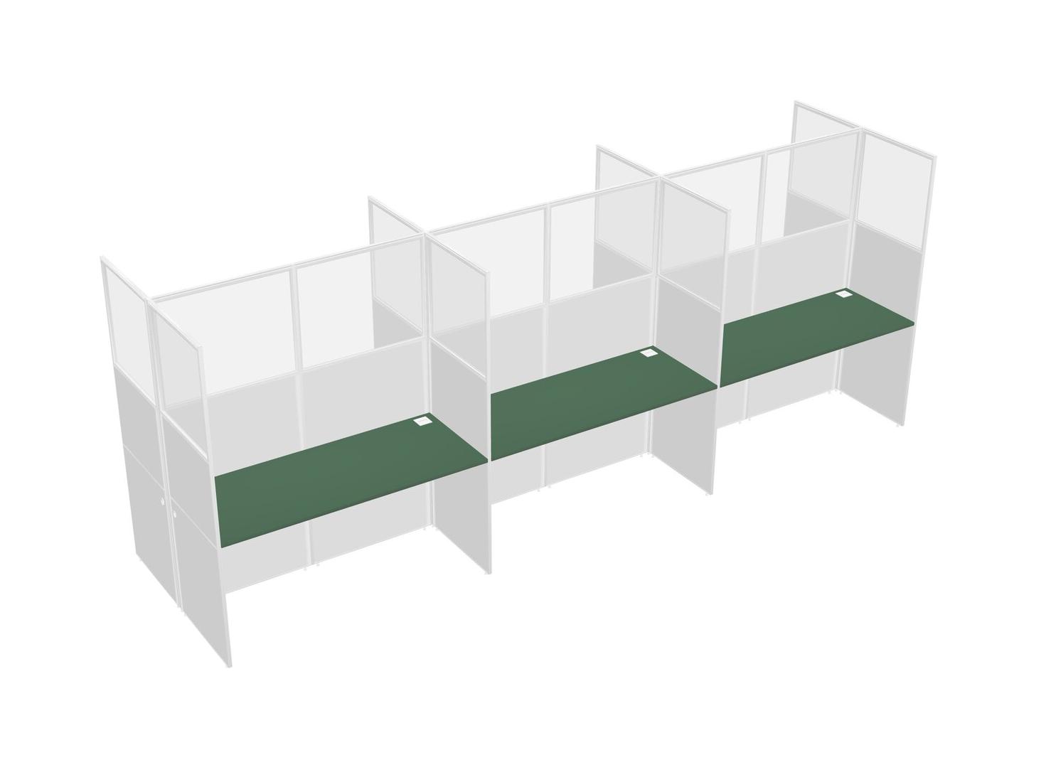 Green Shared Rectangular Office Cubicle Panel System For 6 Persons