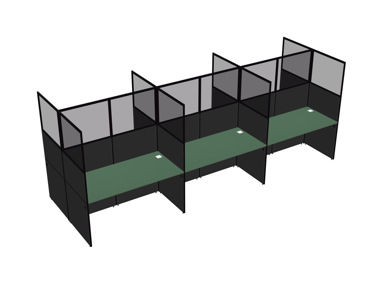 Green Shared Rectangular Office Cubicle Panel System For 6 Persons