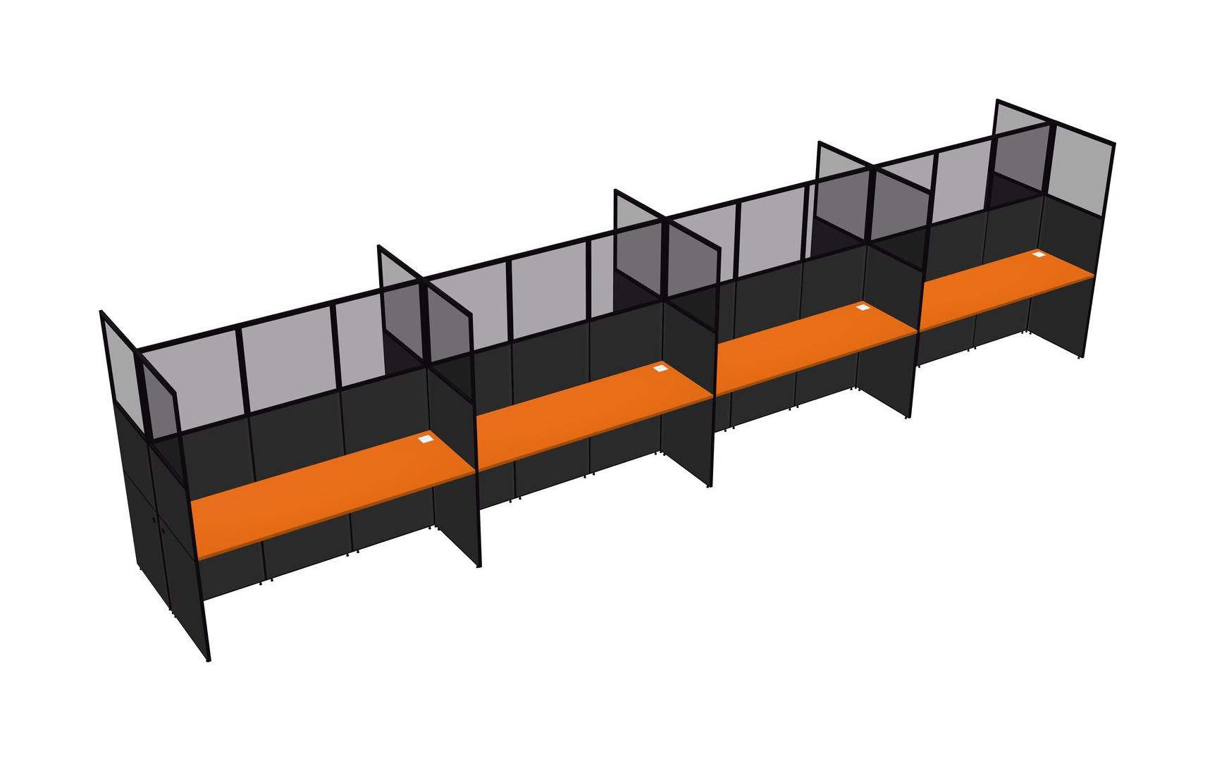 Orange Shared Rectangular Office Cubicle Panel System For 8 Persons