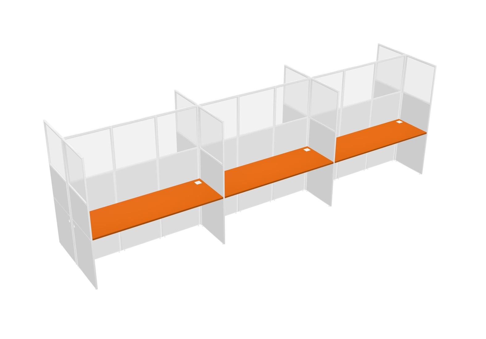 Orange Shared Rectangular Office Cubicle Panel System For 6 Persons