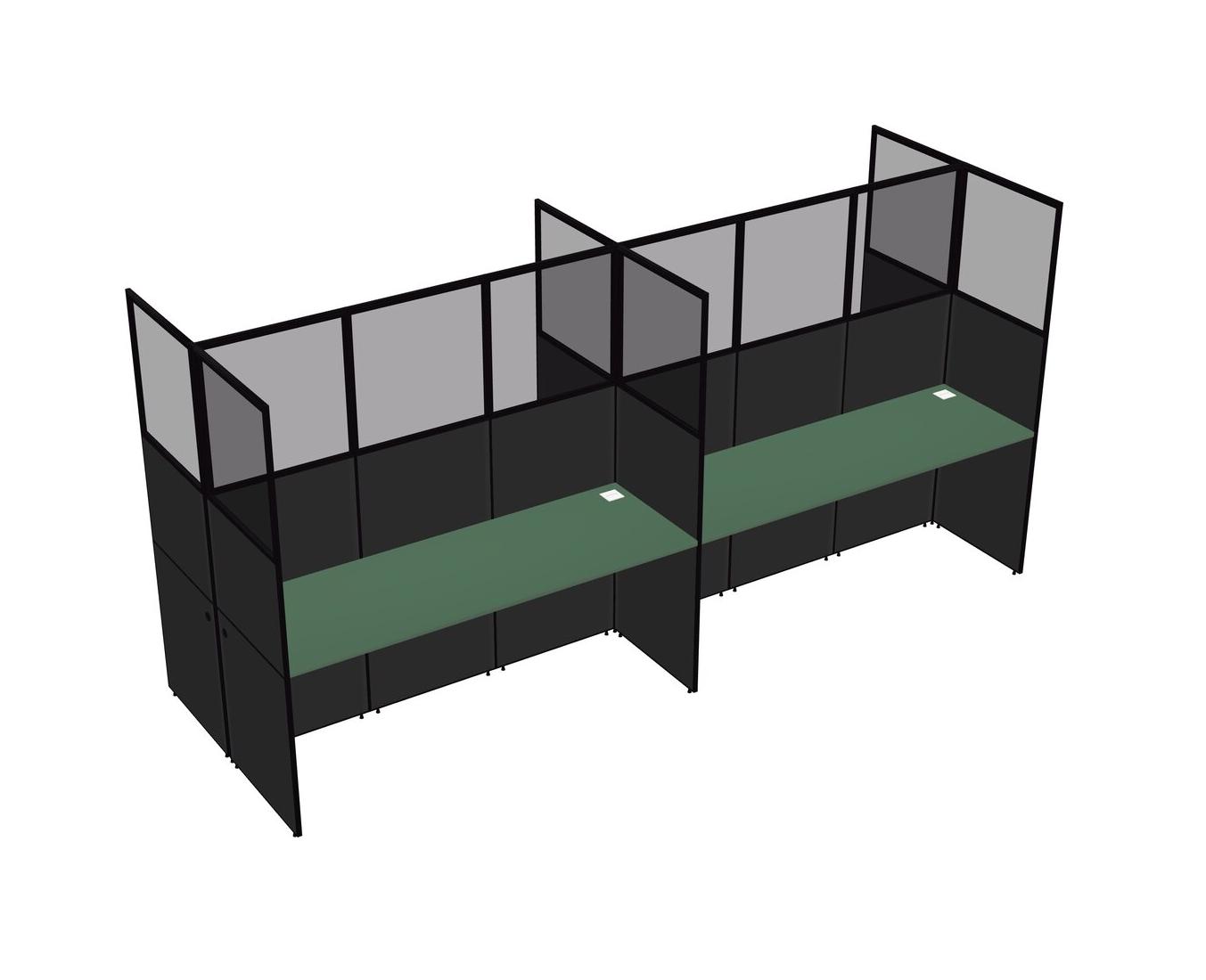 Green Shared Rectangular Office Cubicle Panel System For 4 Persons