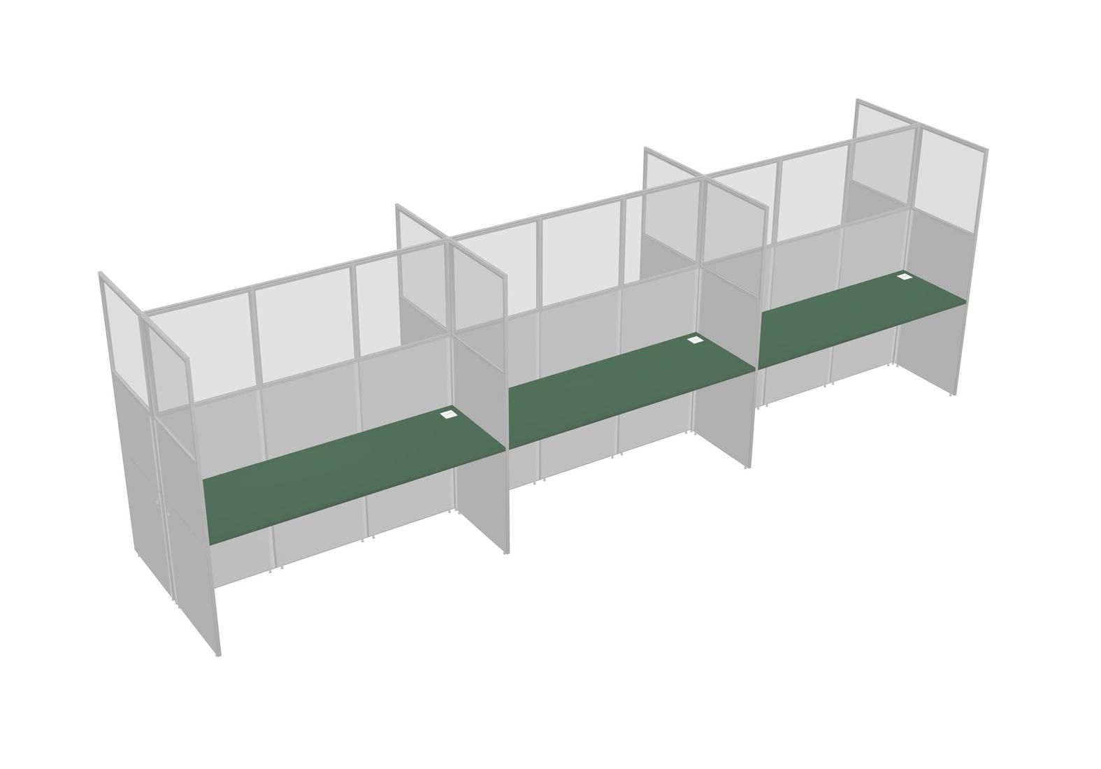 Green Shared Rectangular Office Cubicle Panel System For 6 Persons