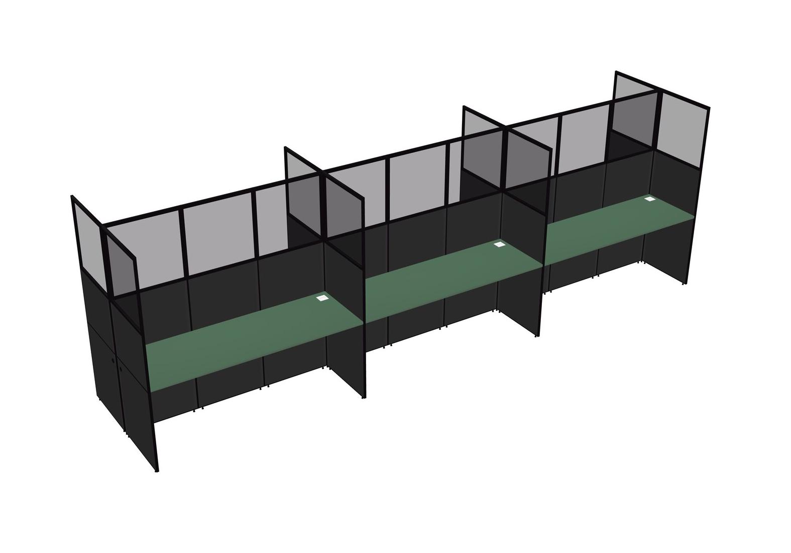 Green Shared Rectangular Office Cubicle Panel System For 6 Persons