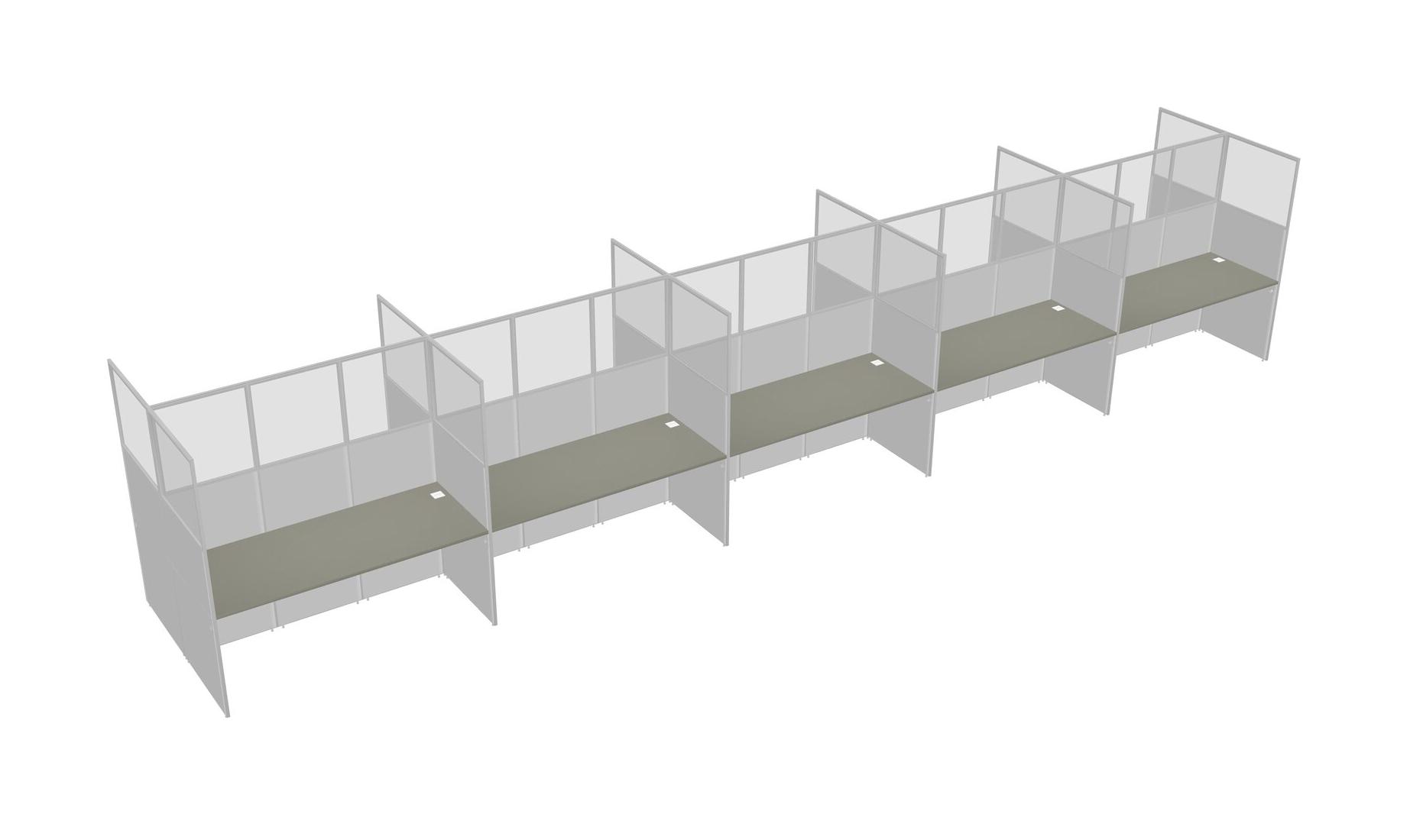 Grey Shadows Shared Rectangular Office Cubicle Panel System For 10 Persons