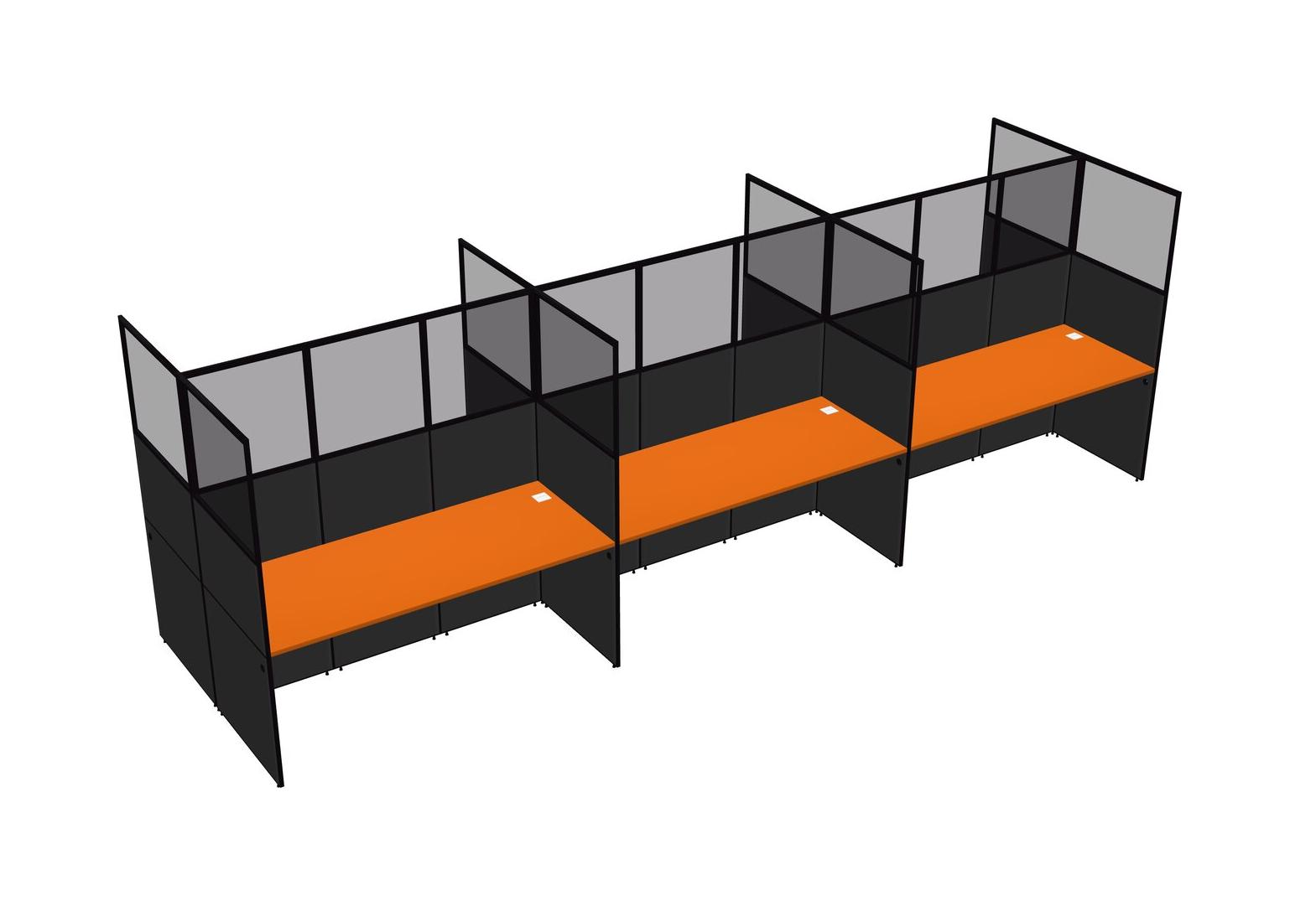 Orange Shared Rectangular Office Cubicle Panel System For 6 Persons
