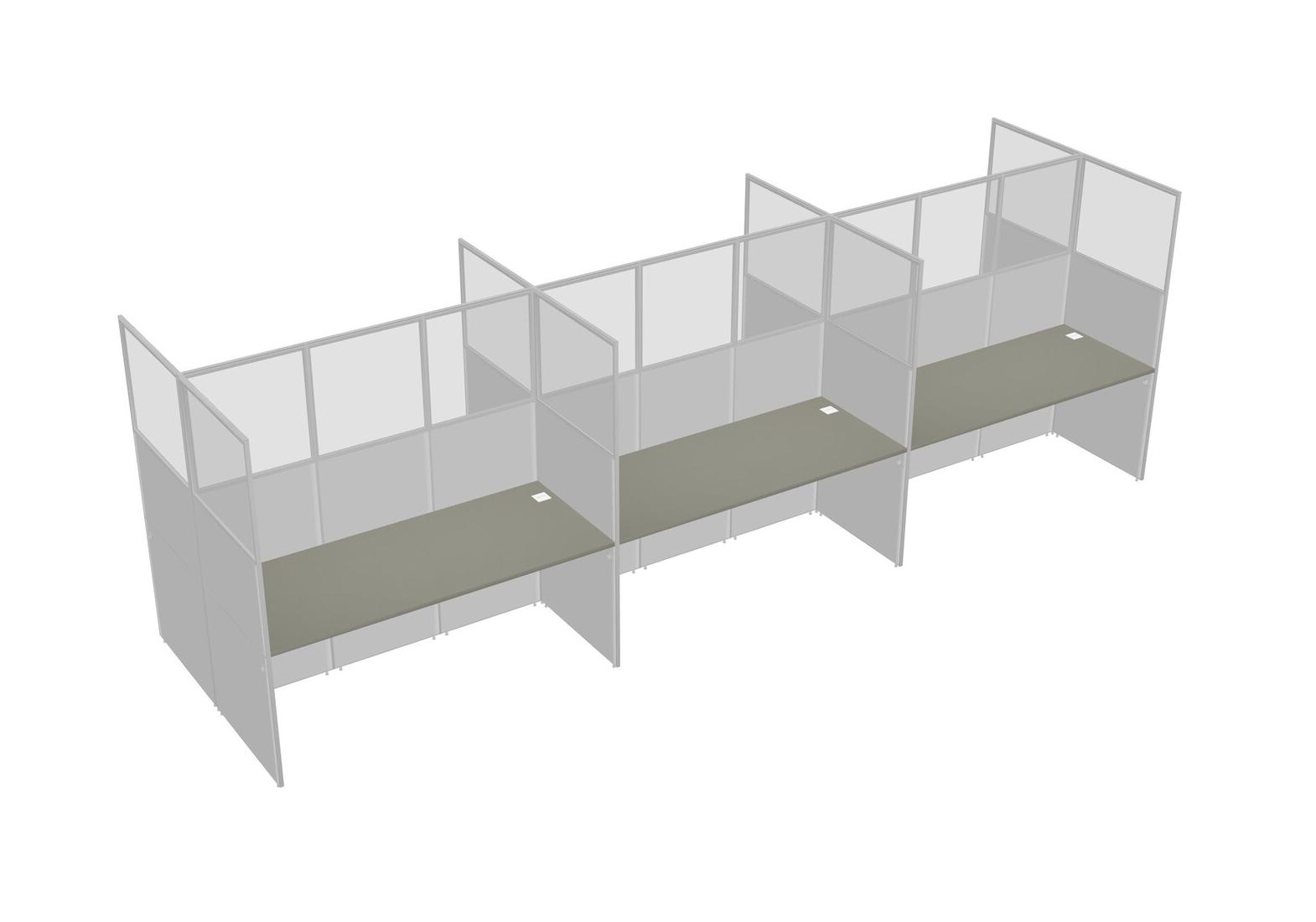 Grey Shadows Shared Rectangular Office Cubicle Panel System For 6 Persons