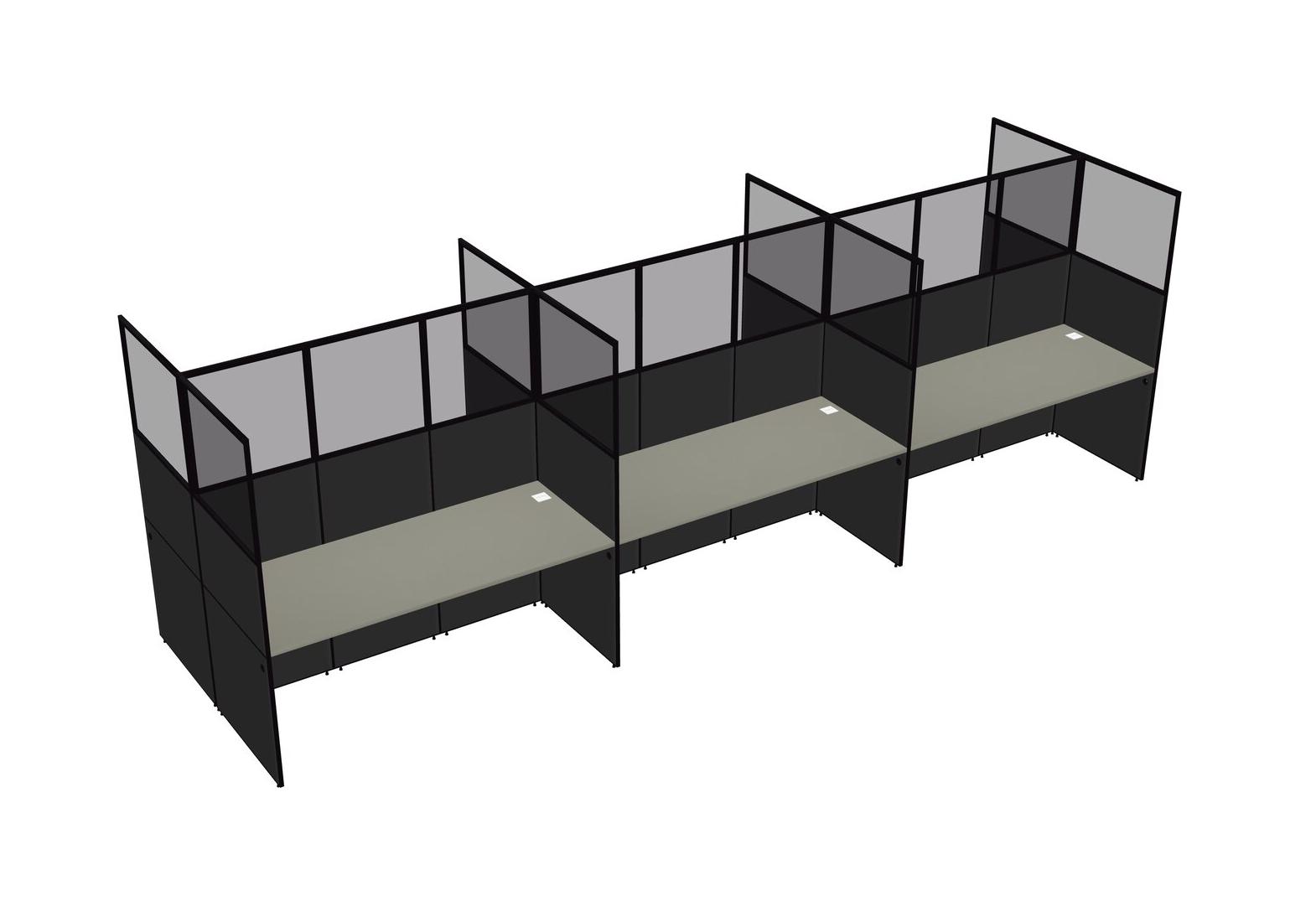 Grey Shadows Shared Rectangular Office Cubicle Panel System For 6 Persons