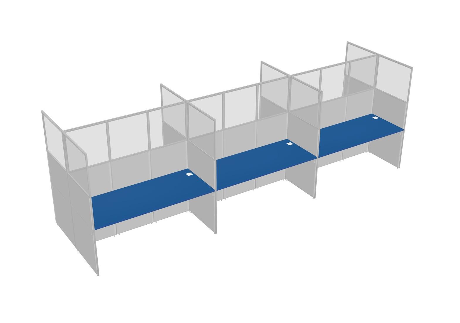 Prism Blue Shared Rectangular Office Cubicle Panel System For 6 Persons