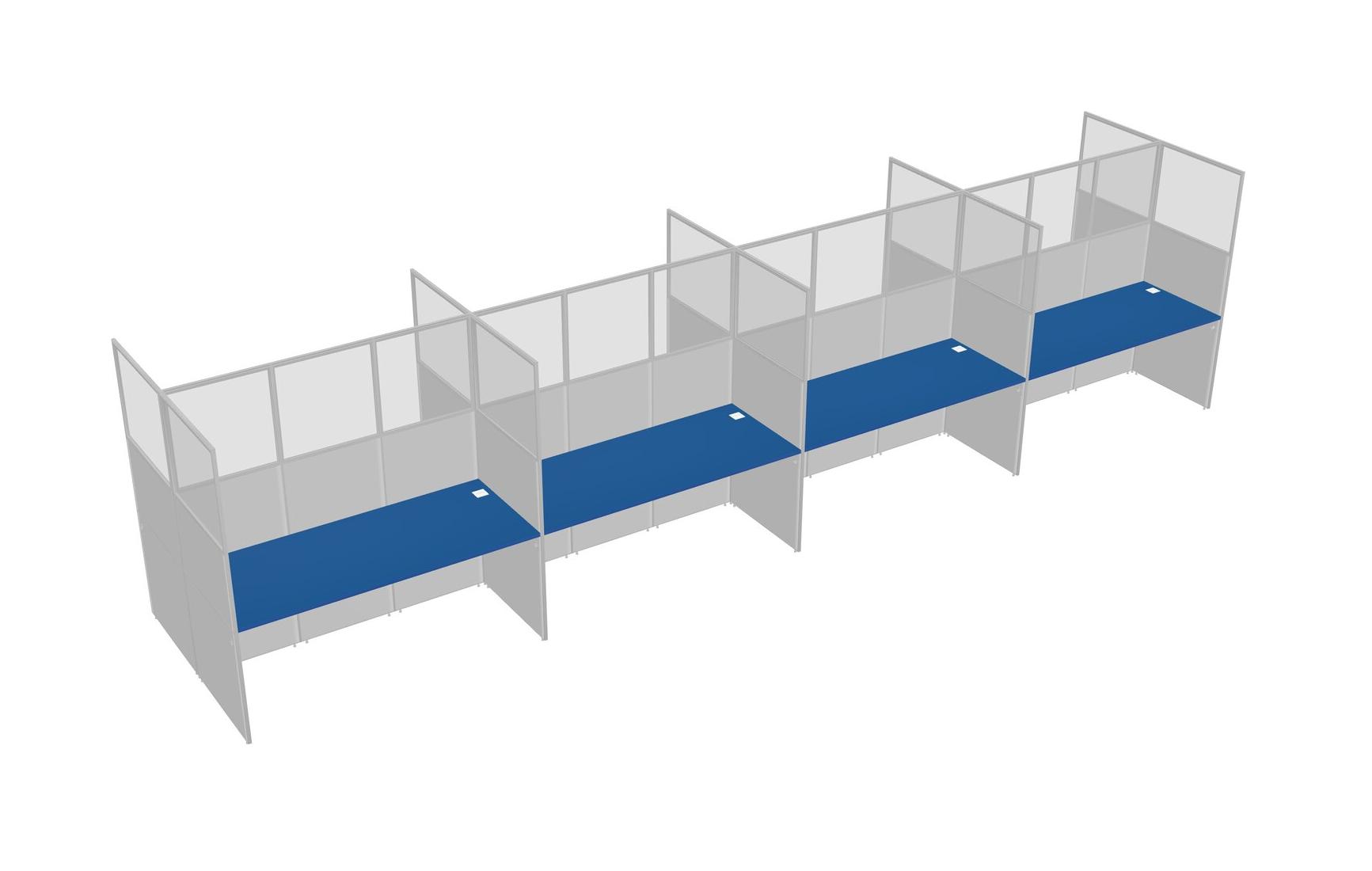 Prism Blue Shared Rectangular Office Cubicle Panel System For 8 Persons