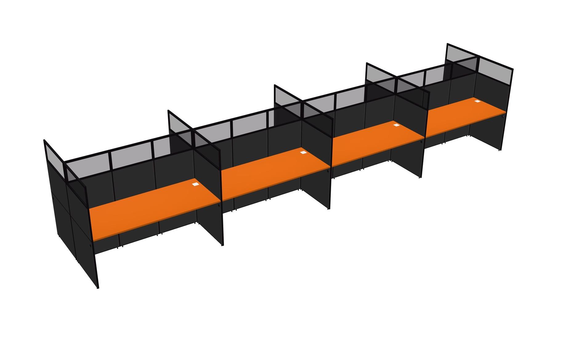 Orange Shared Rectangular Office Cubicle Panel System For 8 Persons