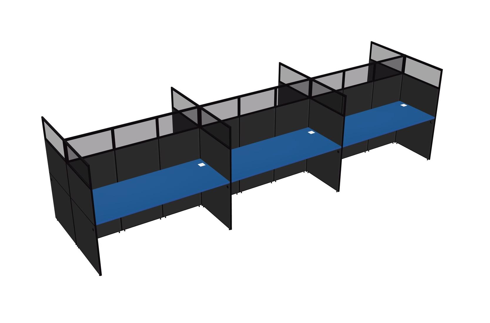 Prism Blue Shared Rectangular Office Cubicle Panel System For 6 Persons