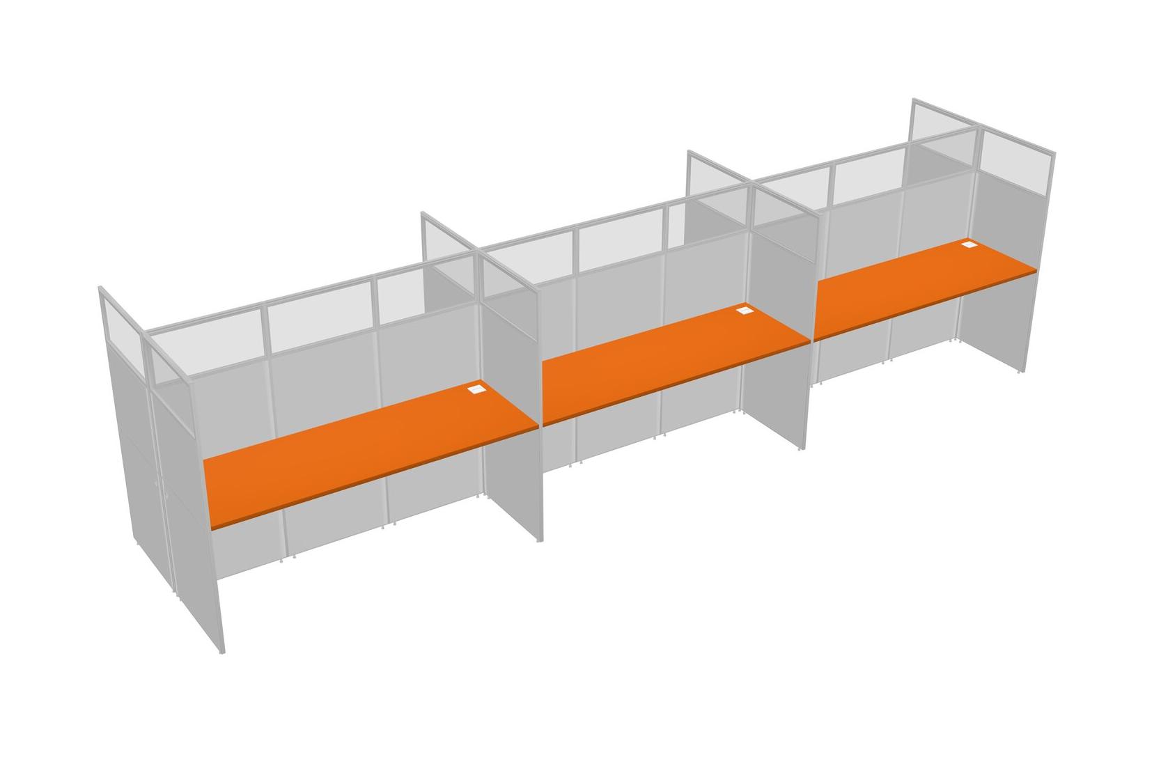 Orange Shared Rectangular Office Cubicle Panel System For 6 Persons
