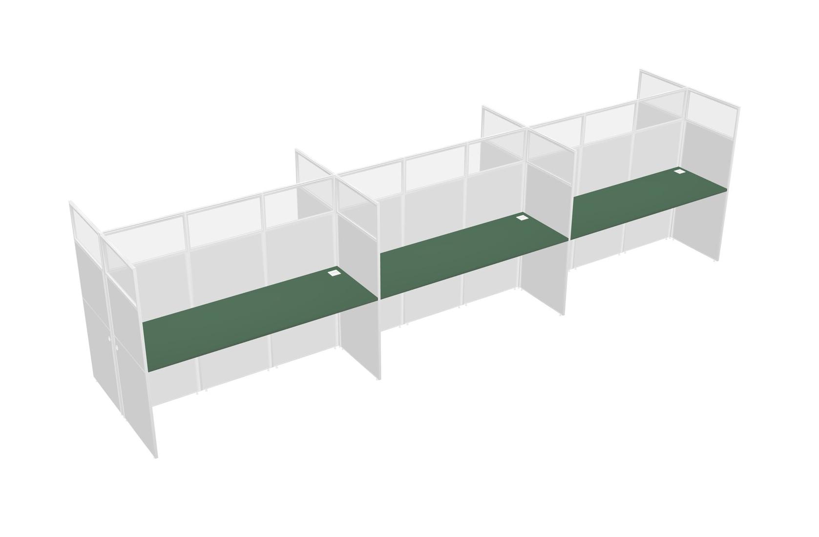 Green Shared Rectangular Office Cubicle Panel System For 6 Persons