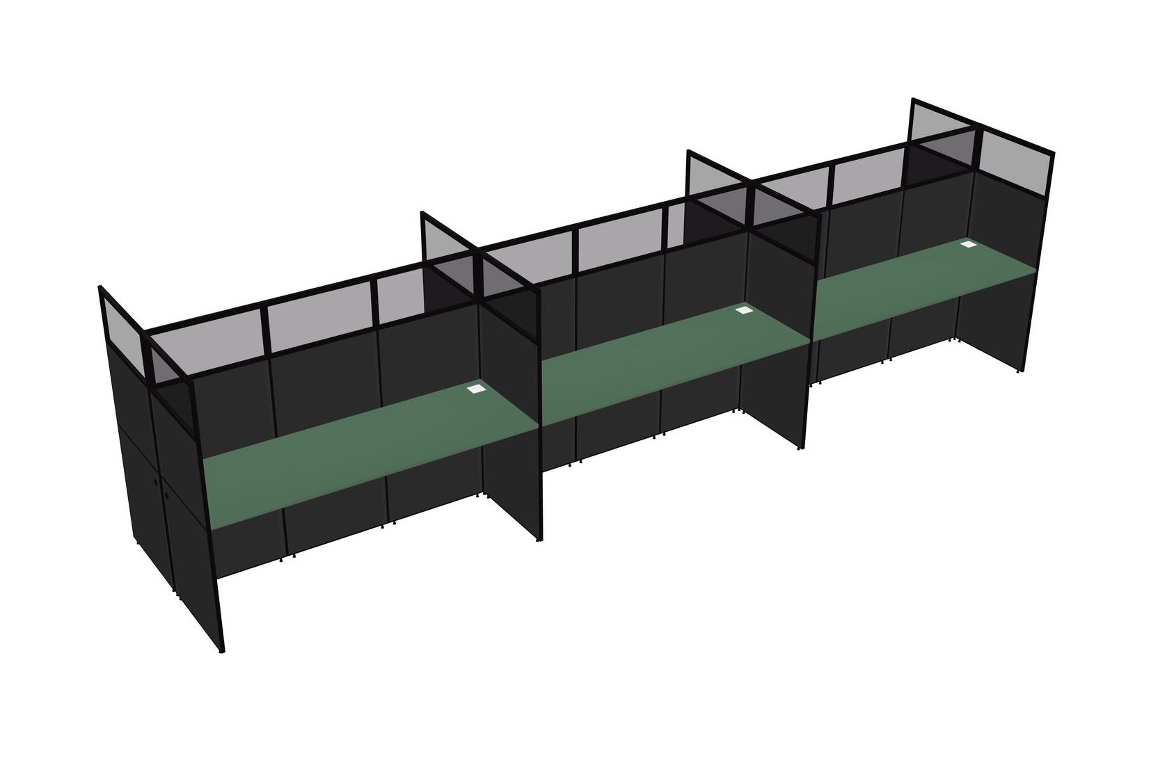 Green Shared Rectangular Office Cubicle Panel System For 6 Persons
