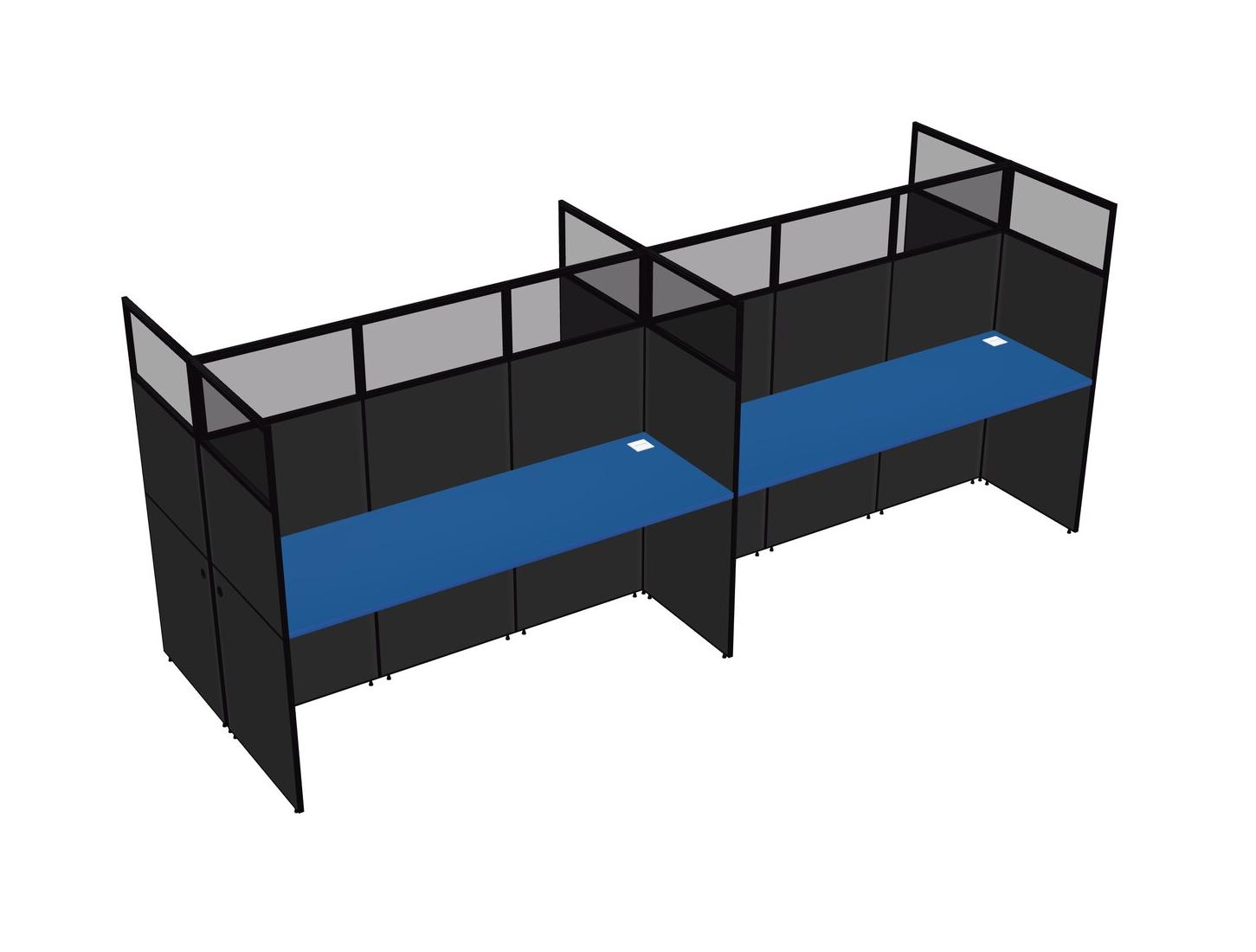 Prism Blue Shared Rectangular Office Cubicle Panel System For 4 Persons