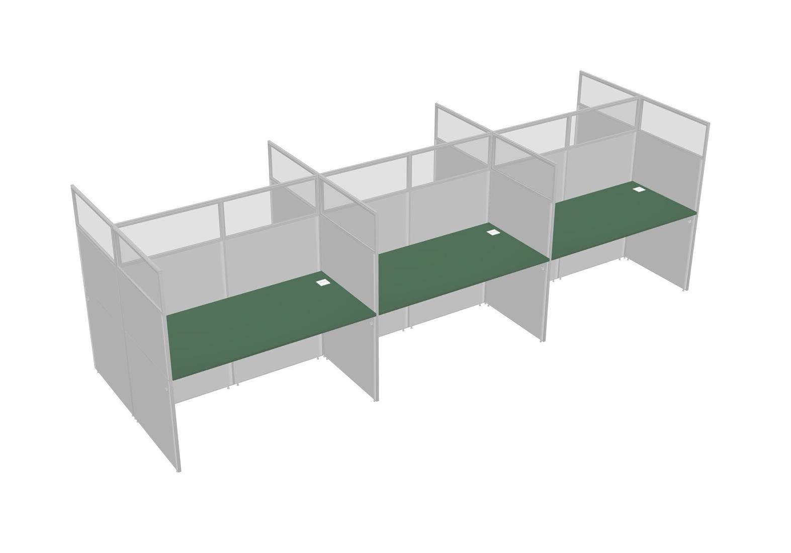 Green Shared Rectangular Office Cubicle Panel System For 6 Persons
