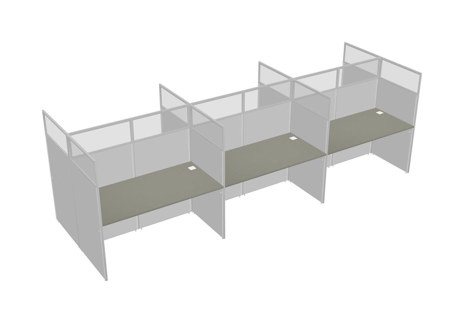 Grey Shadows Shared Rectangular Office Cubicle Panel System For 6 Persons