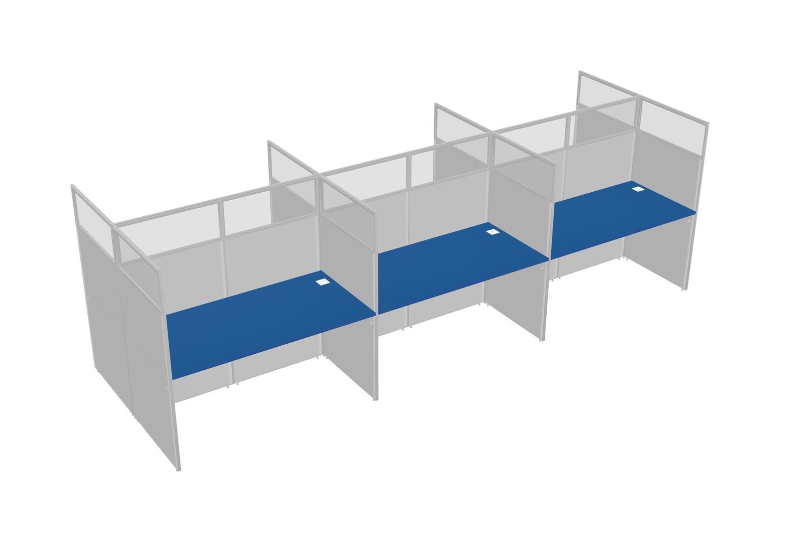 Prism Blue Shared Rectangular Office Cubicle Panel System For 6 Persons