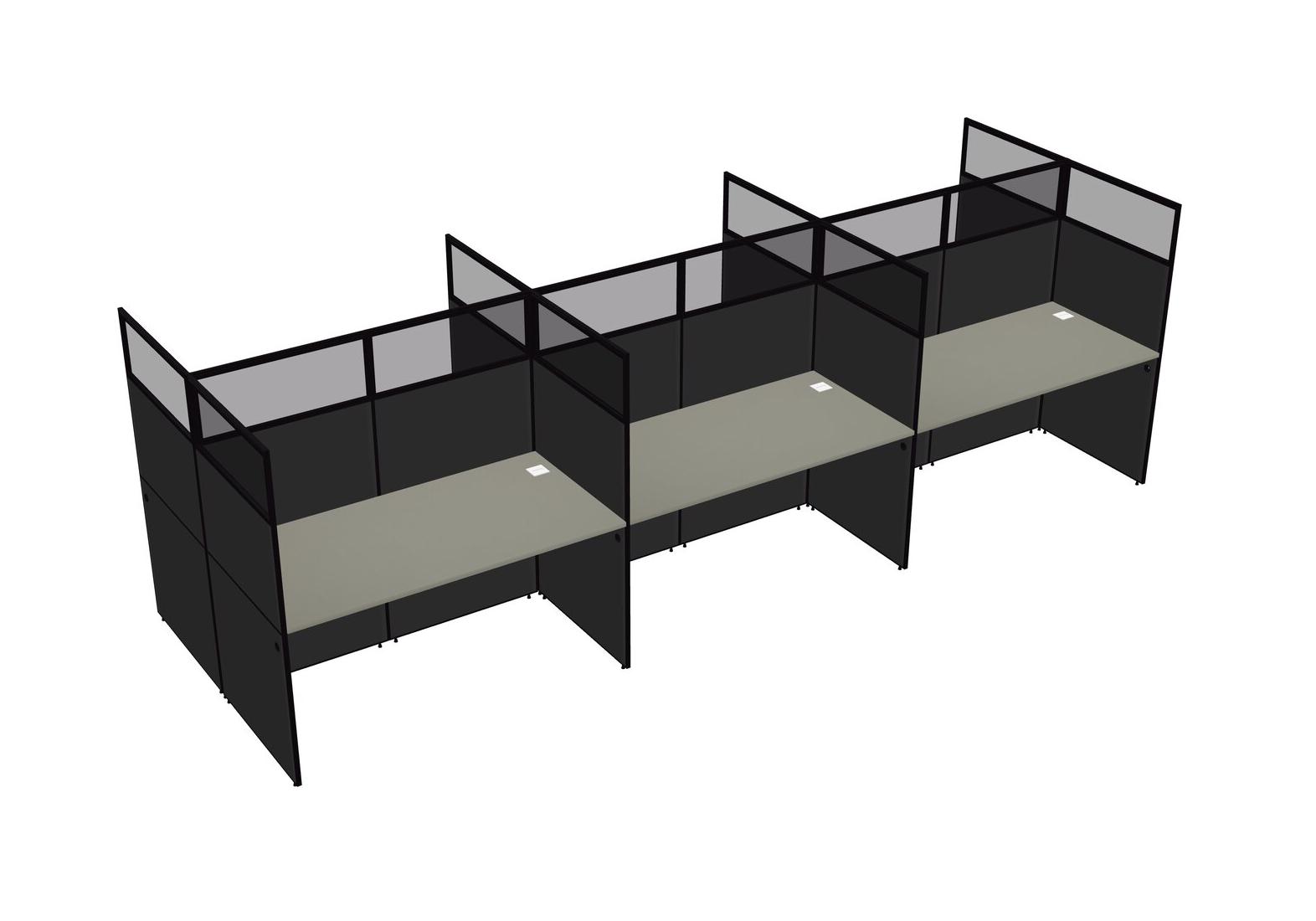 Grey Shadows Shared Rectangular Office Cubicle Panel System For 6 Persons