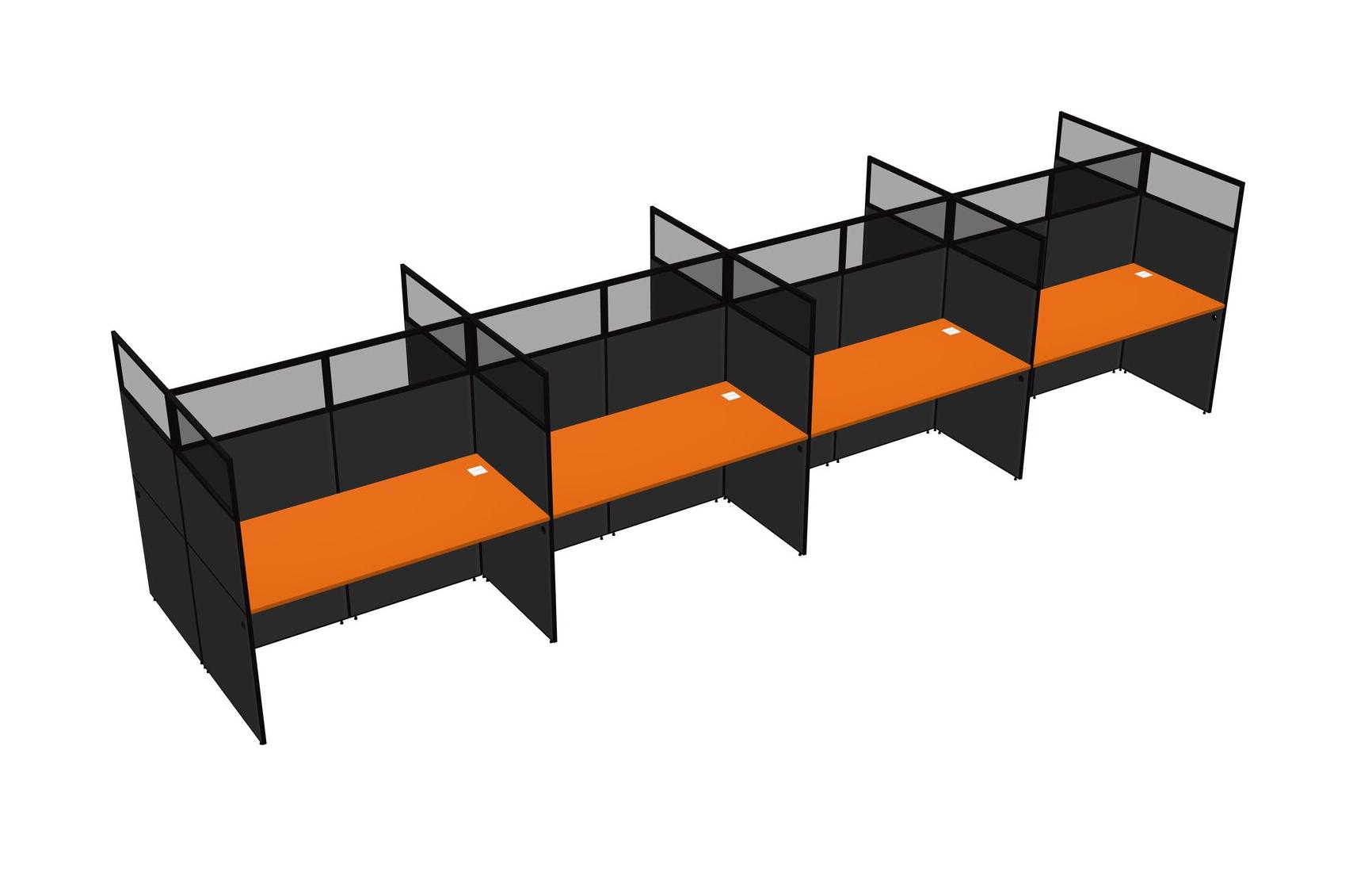 Orange Shared Rectangular Office Cubicle Panel System For 8 Persons