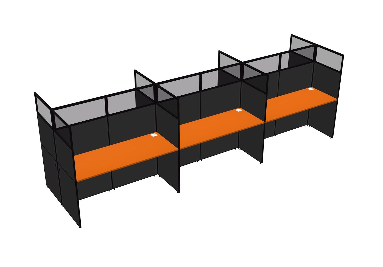 Orange Shared Rectangular Office Cubicle Panel System For 6 Persons