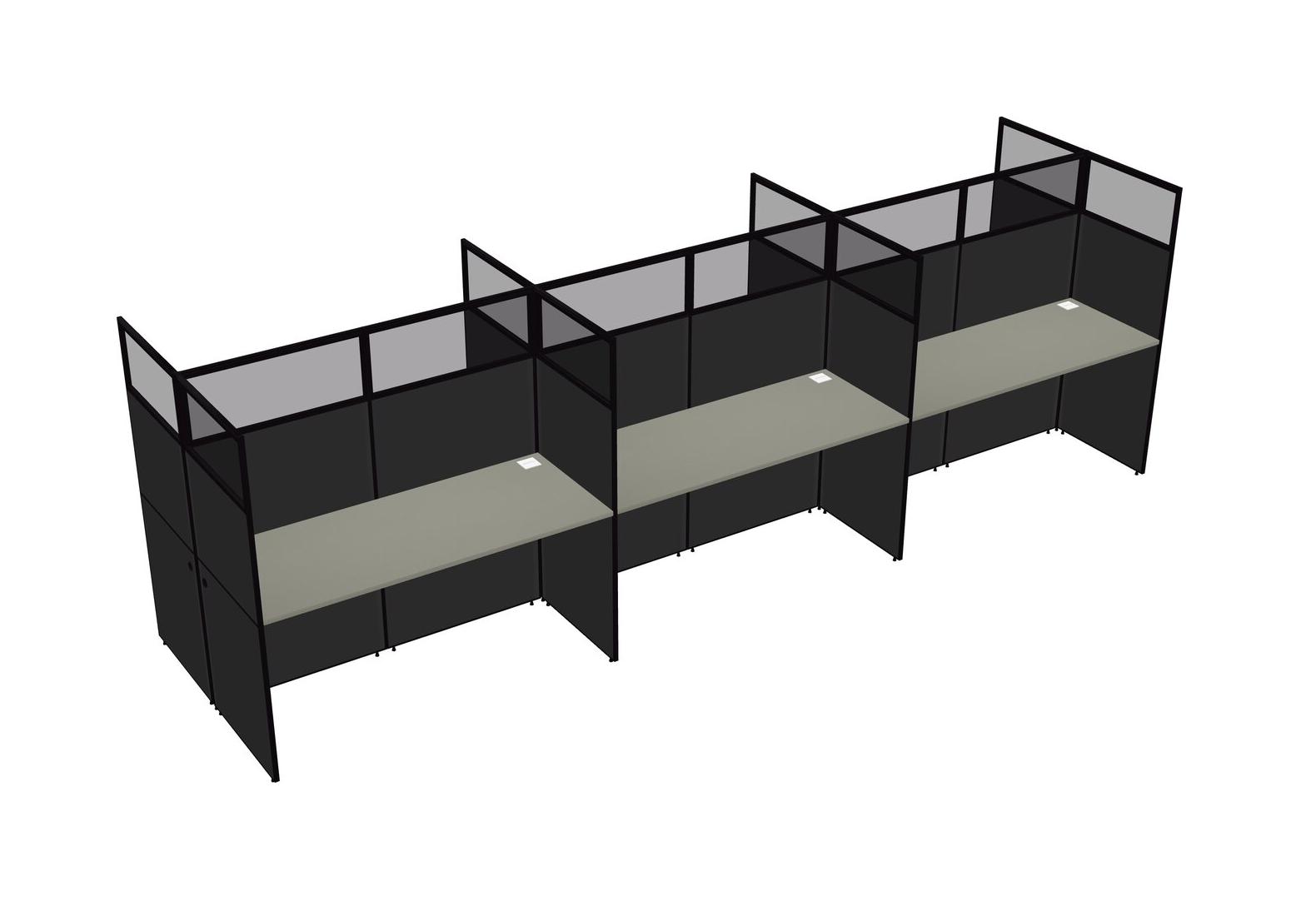 Grey Shadows Shared Rectangular Office Cubicle Panel System For 6 Persons