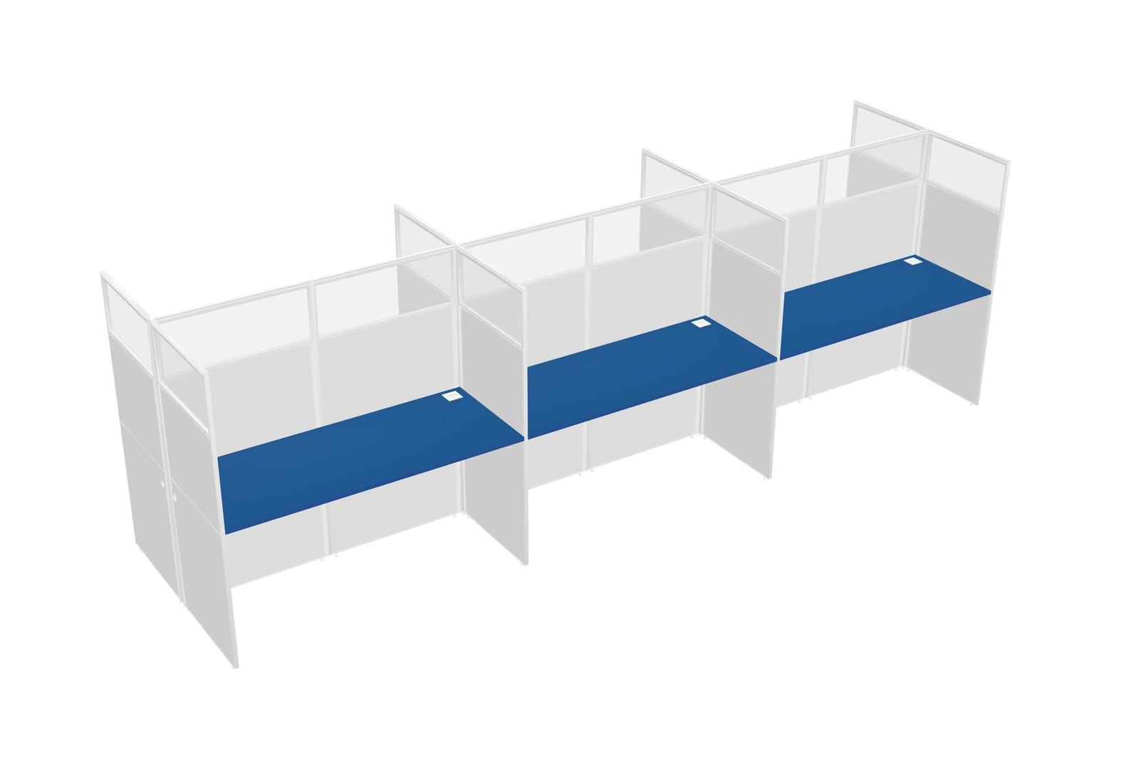 Prism Blue Shared Rectangular Office Cubicle Panel System For 6 Persons