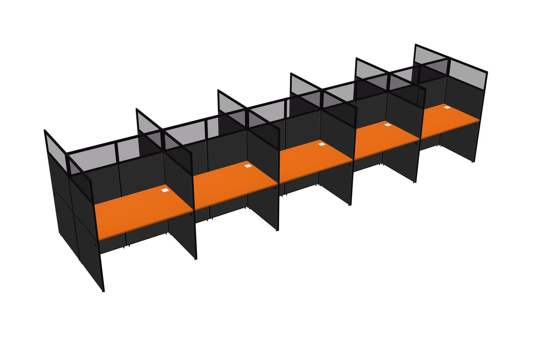 Orange Shared Rectangular Office Cubicle Panel System For 10 Persons