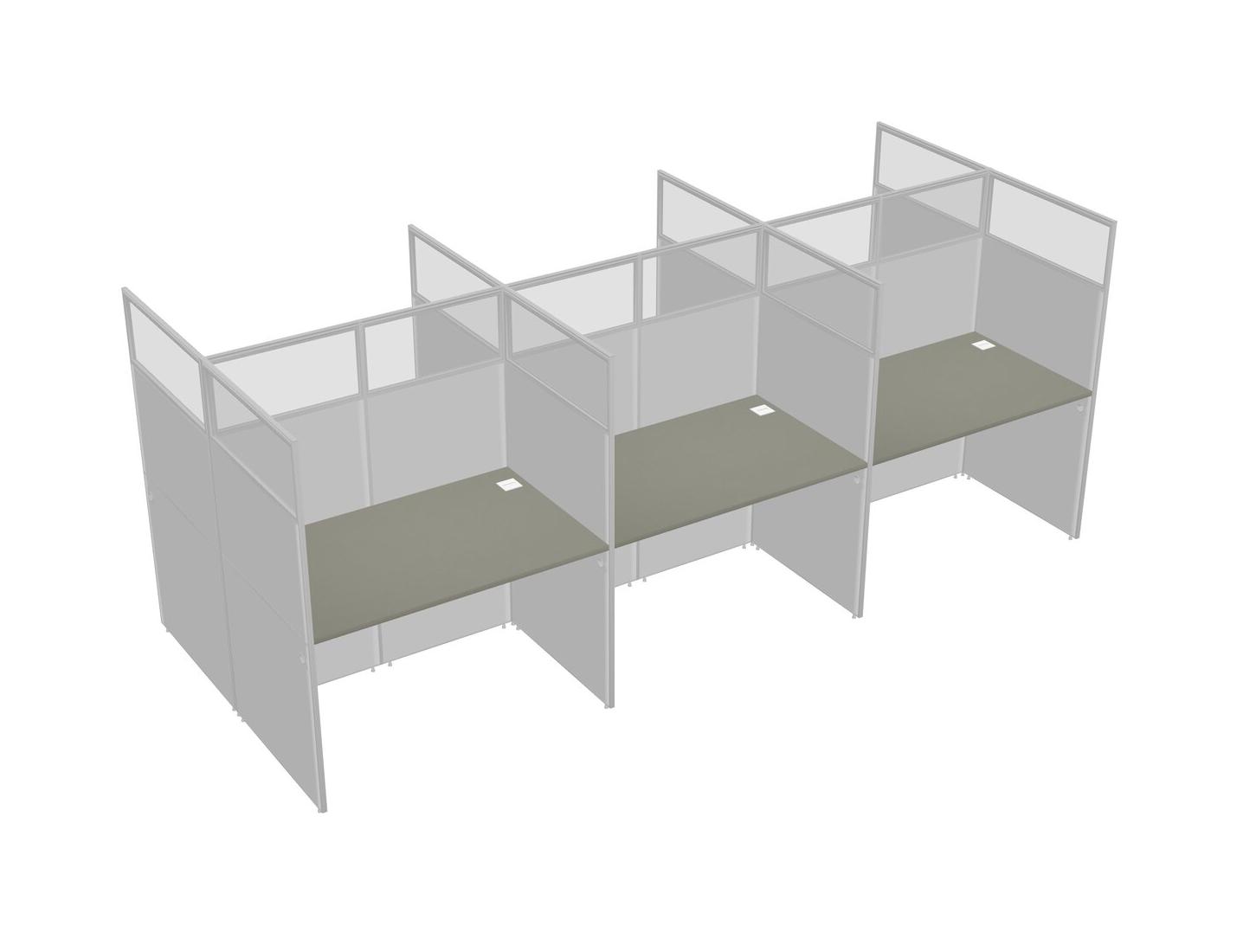 Grey Shadows Shared Rectangular Office Cubicle Panel System For 6 Persons