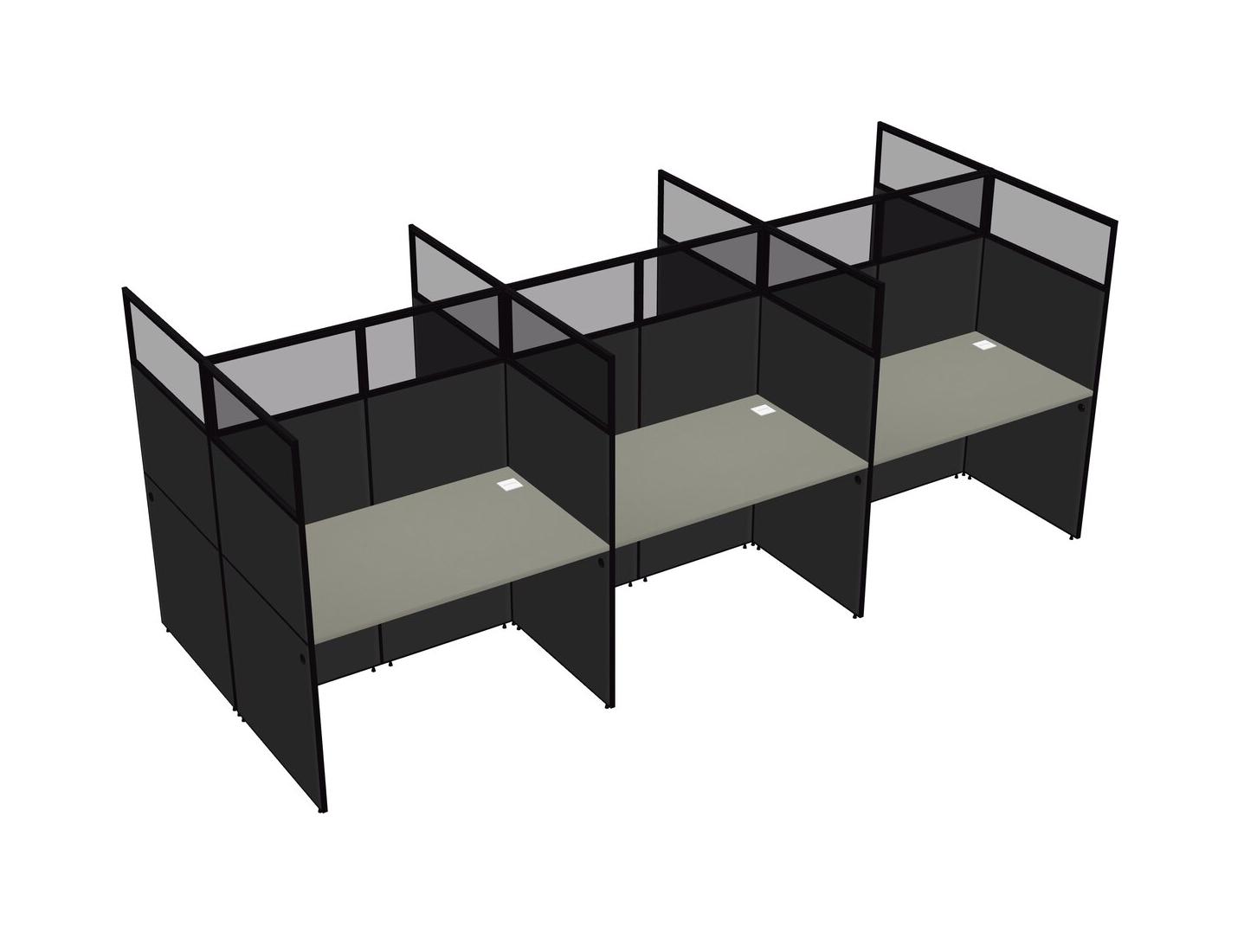 Grey Shadows Shared Rectangular Office Cubicle Panel System For 6 Persons