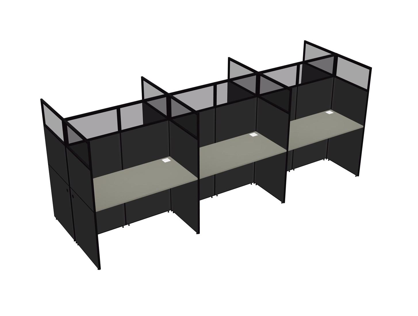 Grey Shadows Shared Rectangular Office Cubicle Panel System For 6 Persons