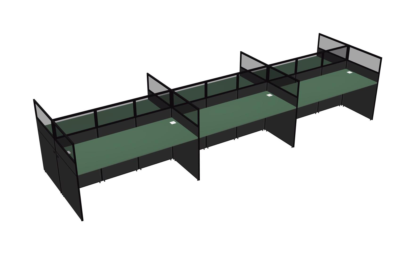 Green Shared Rectangular Office Cubicle Panel System For 6 Persons