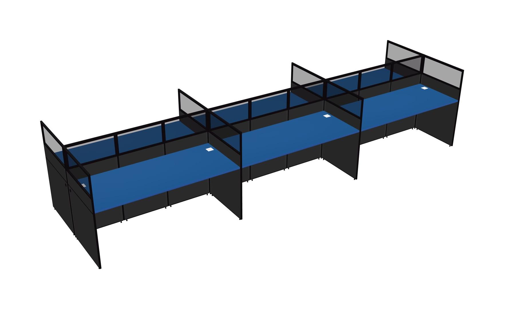 Prism Blue Shared Rectangular Office Cubicle Panel System For 6 Persons