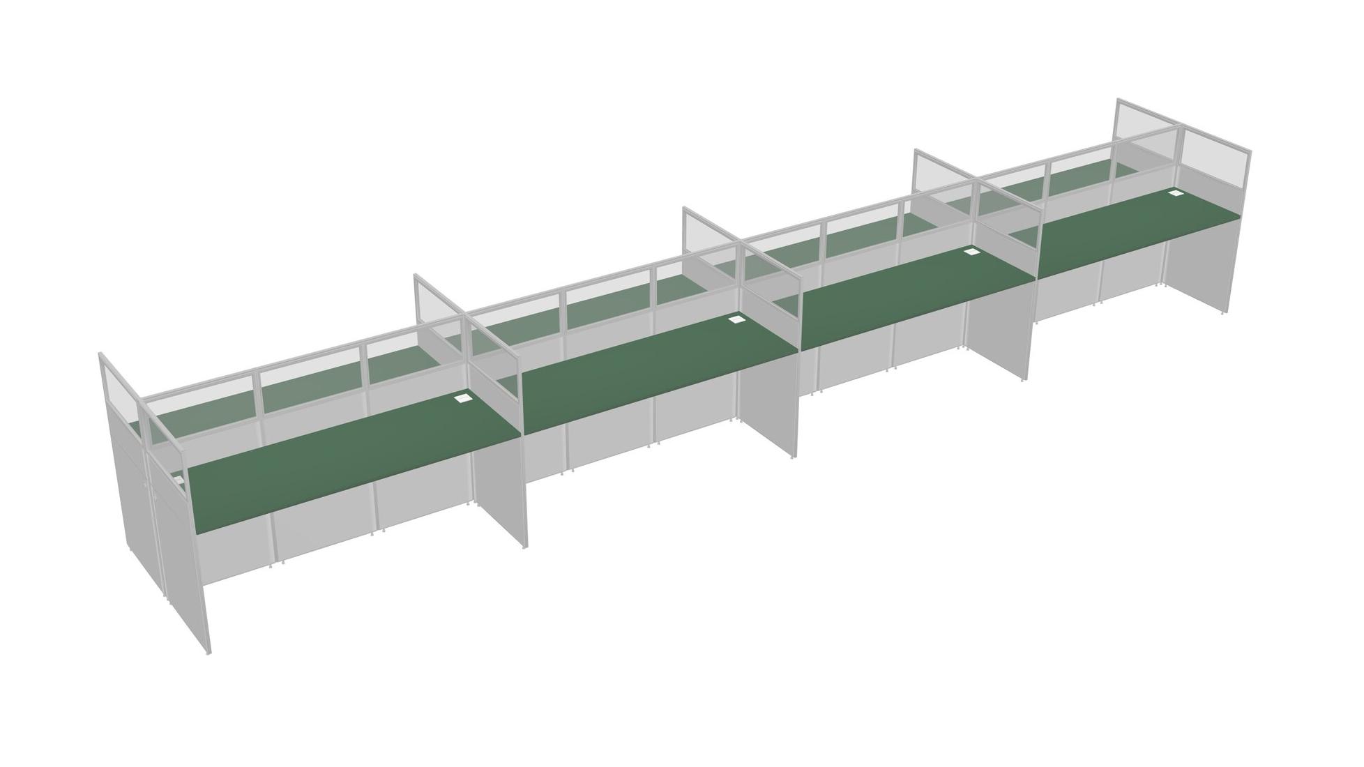 Green Shared Rectangular Office Cubicle Panel System For 8 Persons