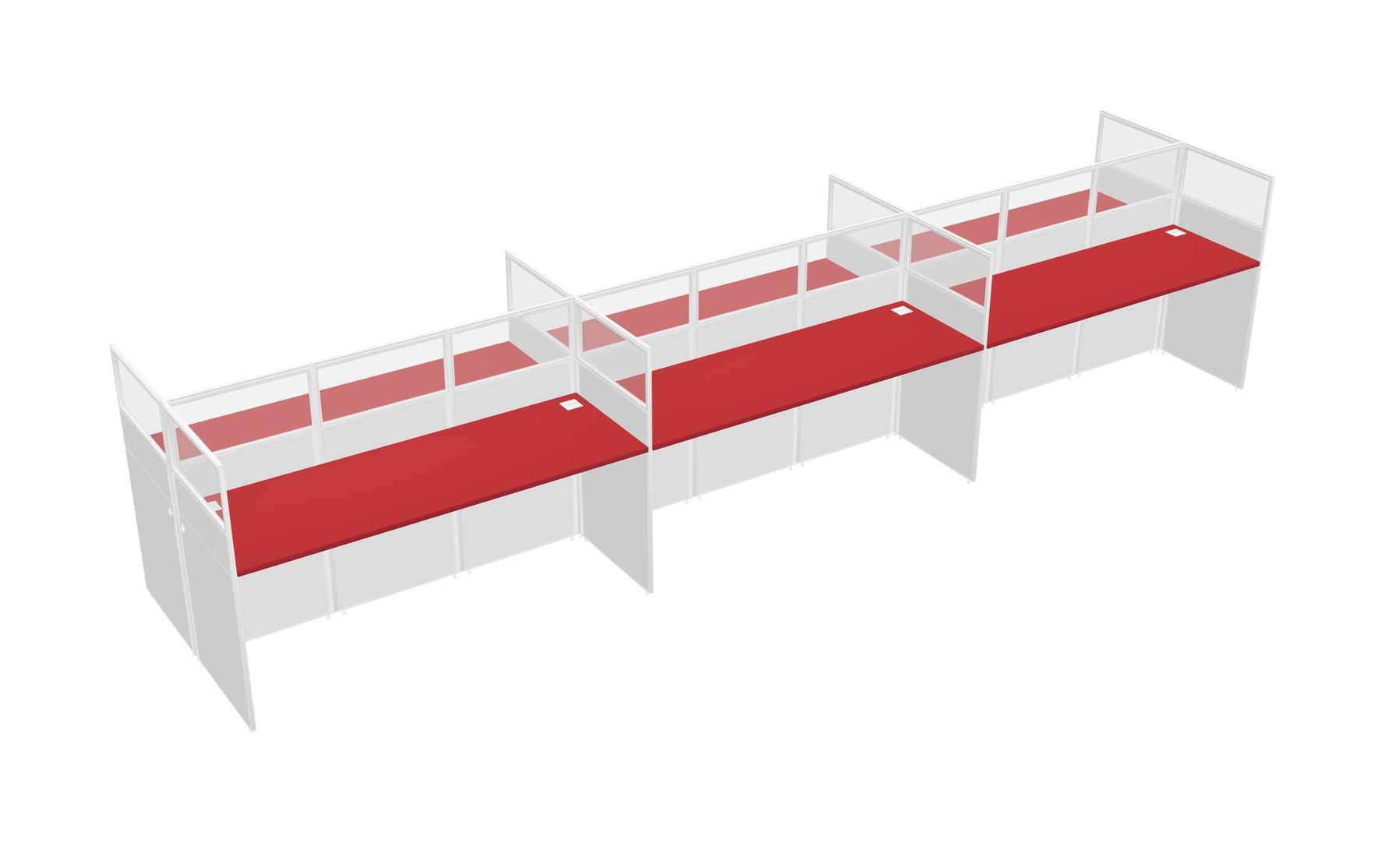 Prism Red Shared Rectangular Office Cubicle Panel System For 6 Persons