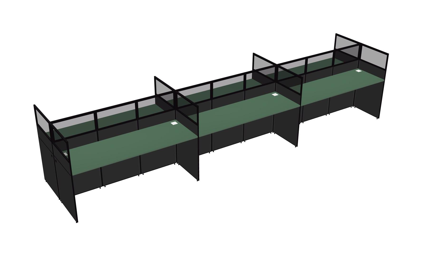 Green Shared Rectangular Office Cubicle Panel System For 6 Persons