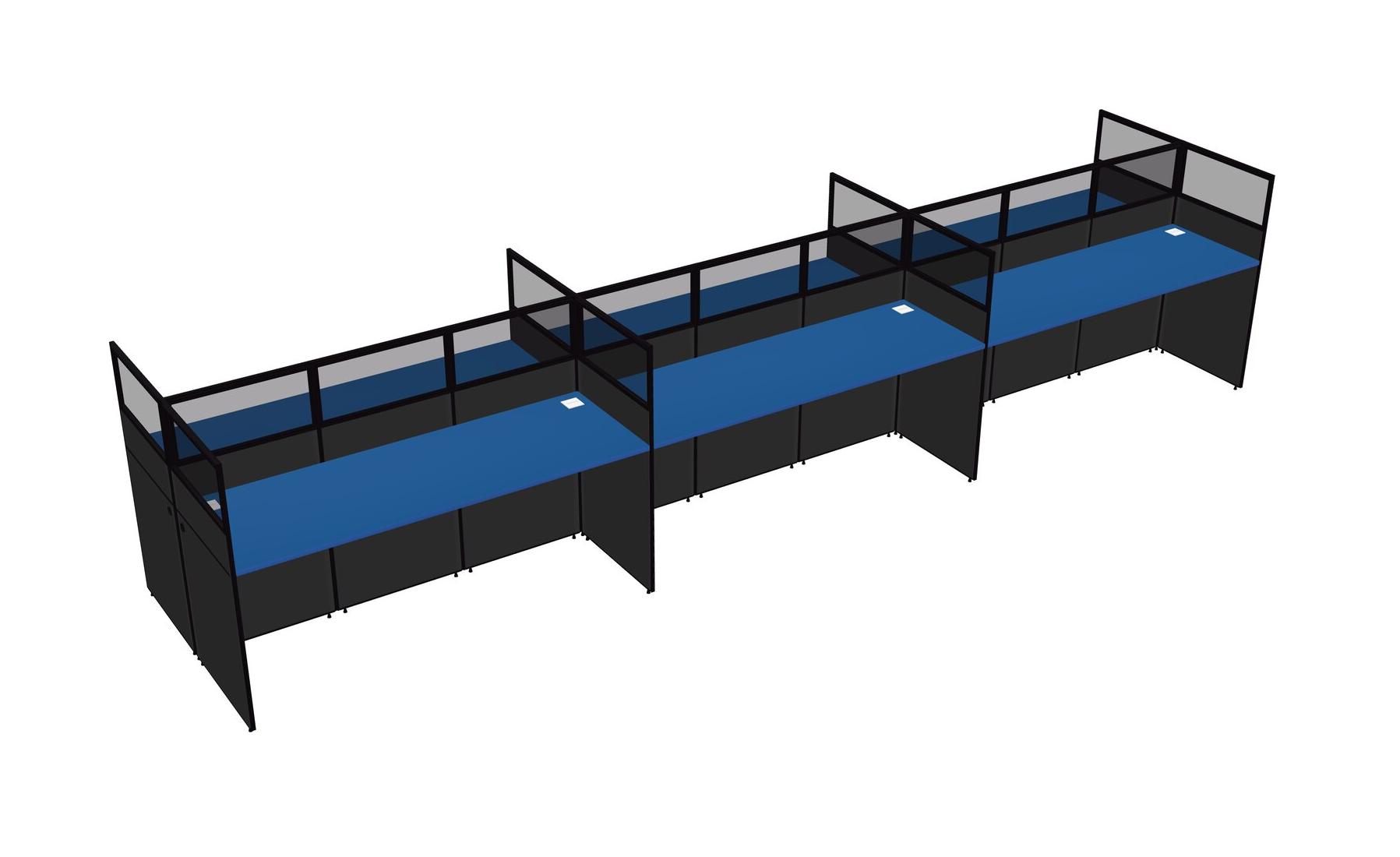 Prism Blue Shared Rectangular Office Cubicle Panel System For 6 Persons