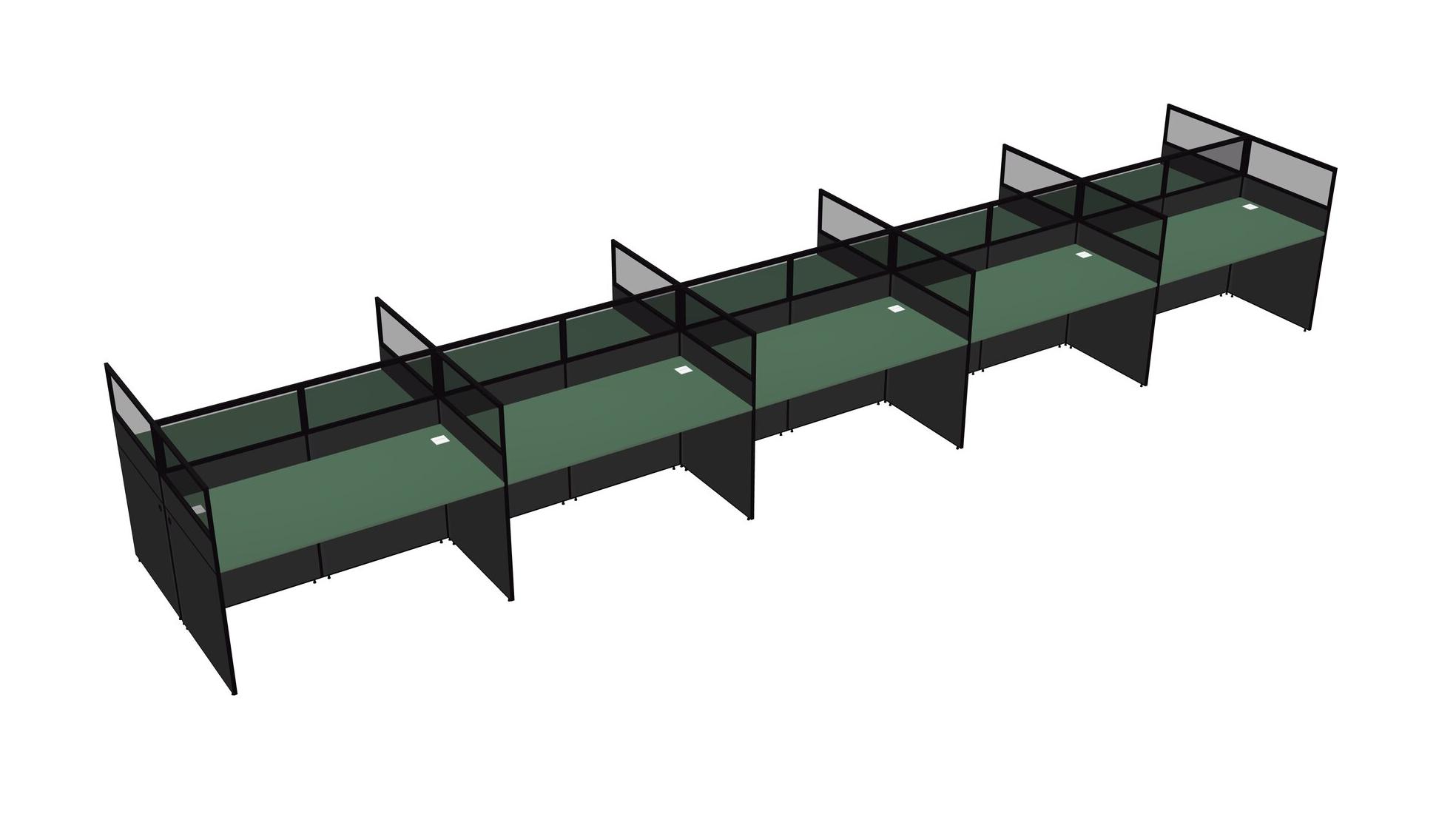 Green Shared Rectangular Office Cubicle Panel System For 10 Persons