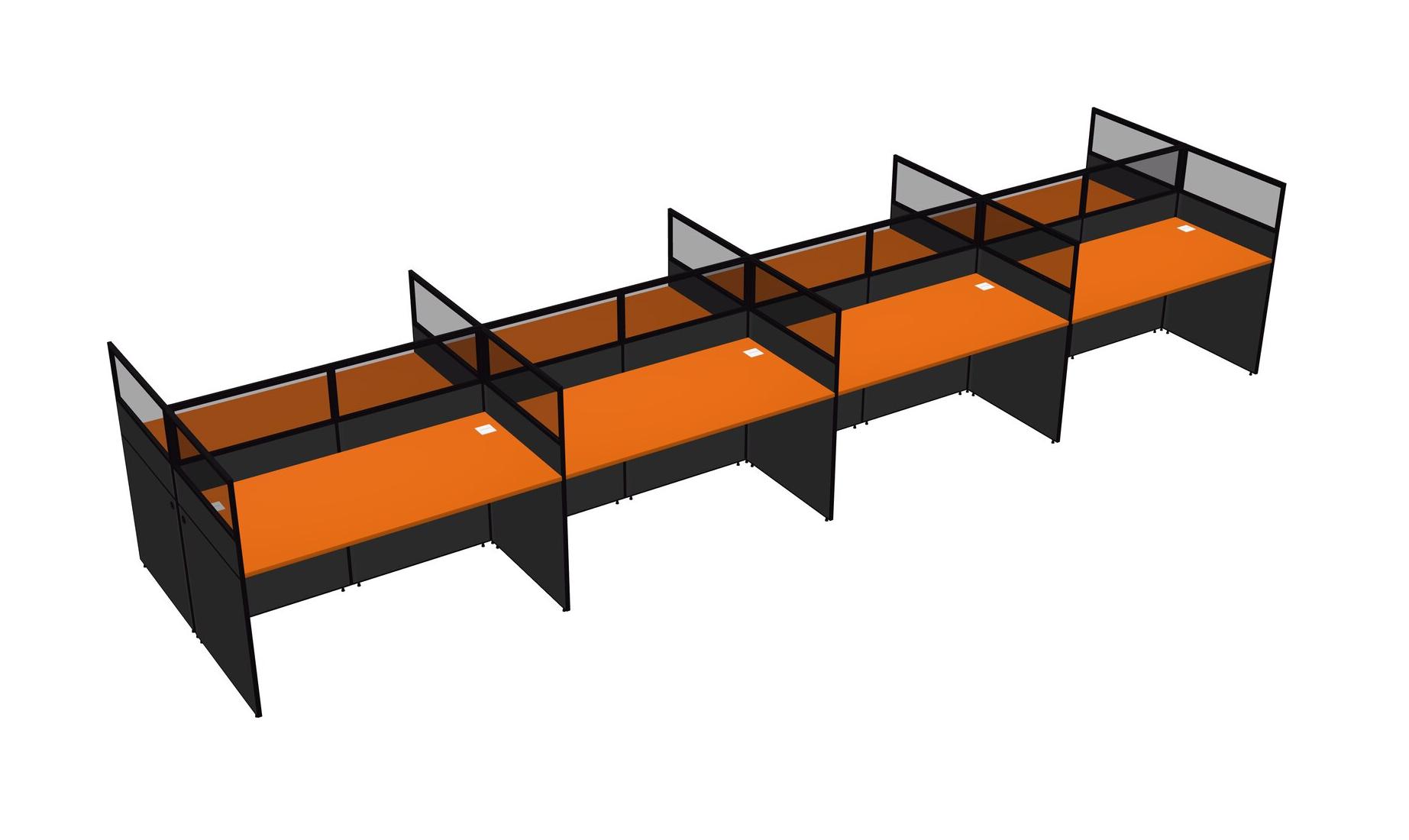 Orange Shared Rectangular Office Cubicle Panel System For 8 Persons